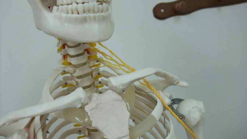 首(第5頸髄~第1胸髄)から肩・腕にかけて腕神経叢という神経の束が伸びている。