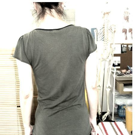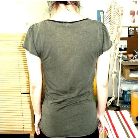 施術前~肩甲骨が浮き出ている、左右差がある
